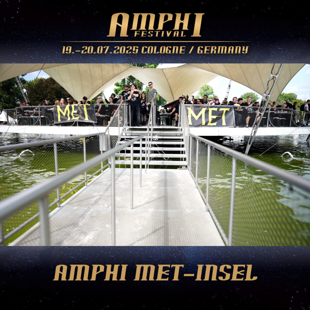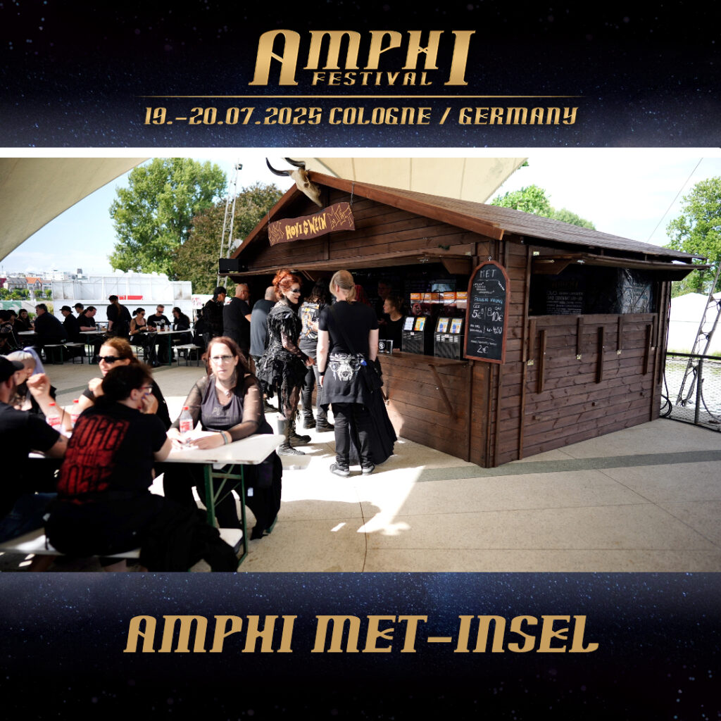 our legendary mead island will of course once again be part of Amphi 2025 – and, as always, a central meeting point in the middle of the festival site! Here you can experience the festival action up close with a mug of mead or Viking blood in your hand, while you relax on the numerous benches and let your gaze wander over the site.