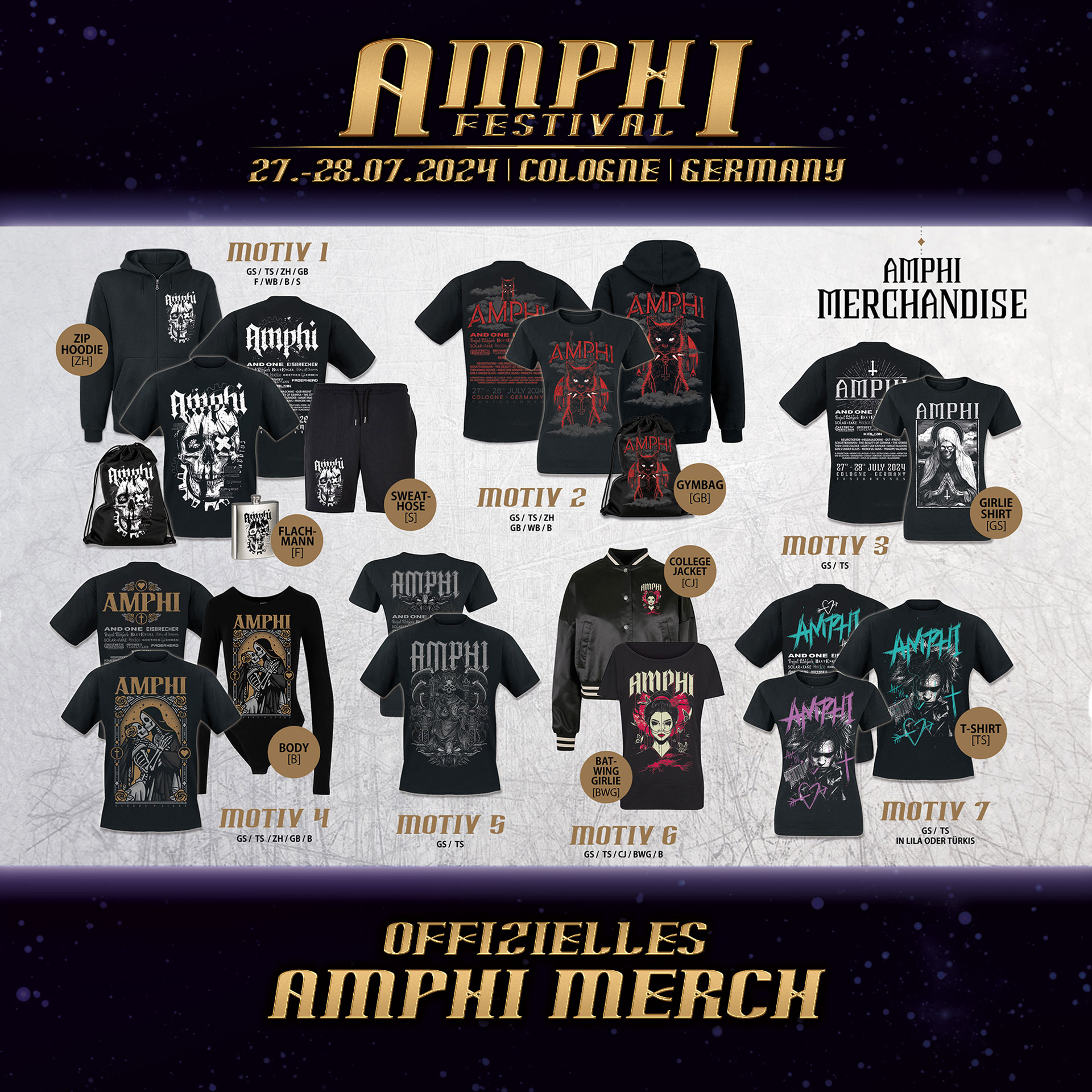Amphi Festival auf Facebook Amphi Festival auf YouTube Amphi Festival auf Instagram Amphi Festival auf Spotify Amphi Festival auf TikTok